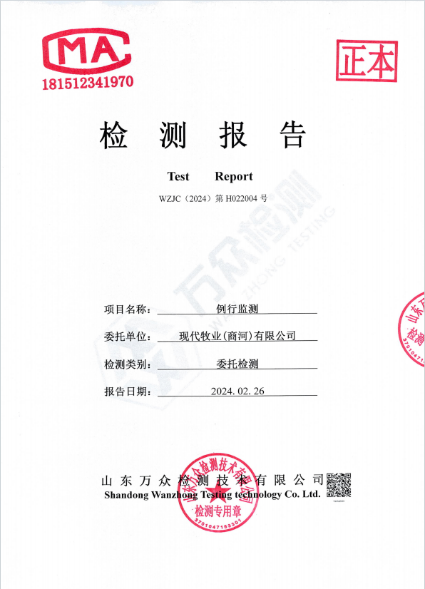 现代牧业(商河)有限公司2024年2月例行监测检测报告环境信息公开表