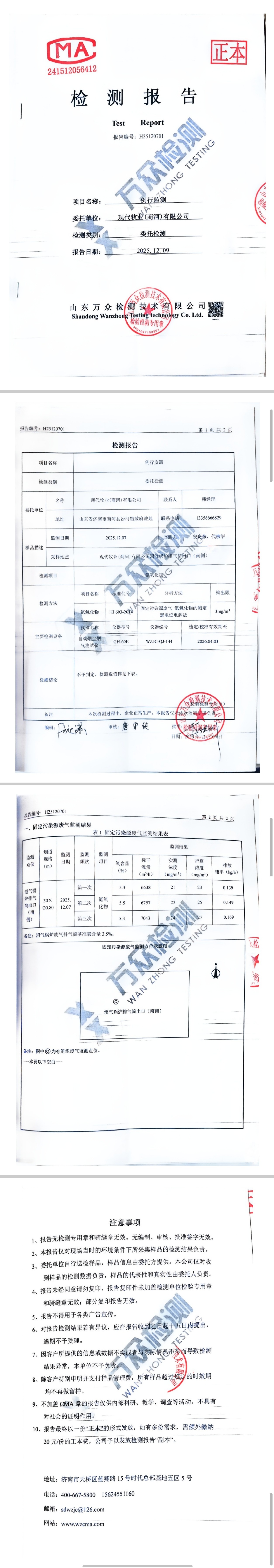 现代牧业(商河)有限公司2025年12月例行监测检测报告环境信息公开表